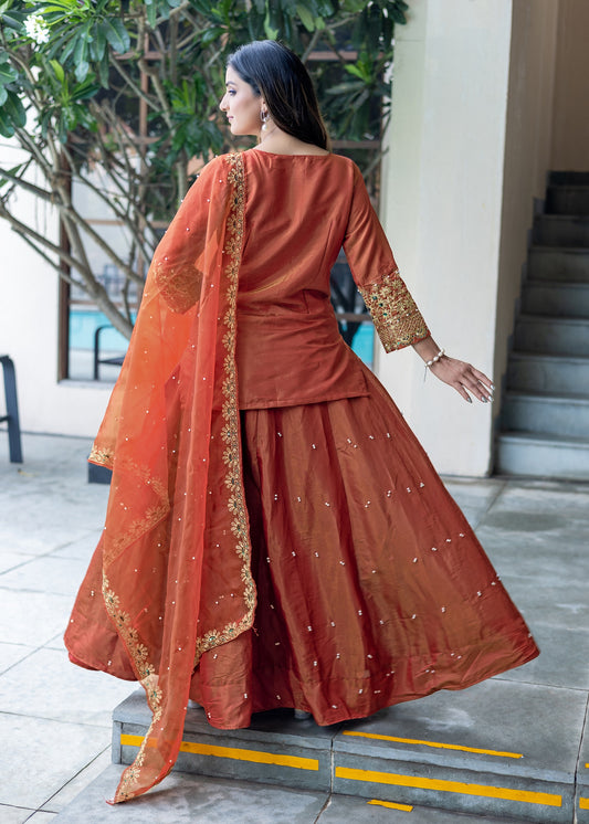 Women's Designer Simmer Silk Orange Color Lehenga Choti With Dupatta