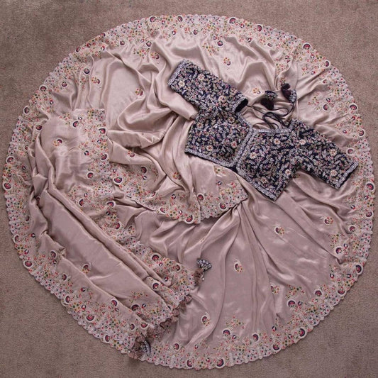 Women's Embroidery Organza Blue Color Saree With Unstitch Blouse